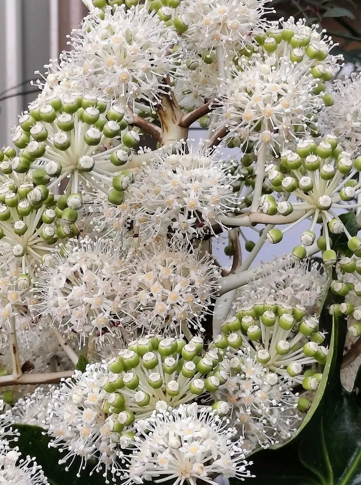 日当たりほぼゼロの場所でも、ヤツデの花は綺麗に咲くんだね✨