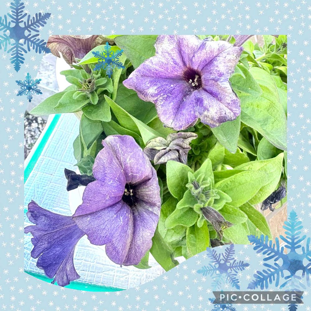 雪❄️を被って咲いてるペチュニアは初めて🤣🤣色が抜けてるけど、冬の方が咲いてるのは何故かなぁ🤔