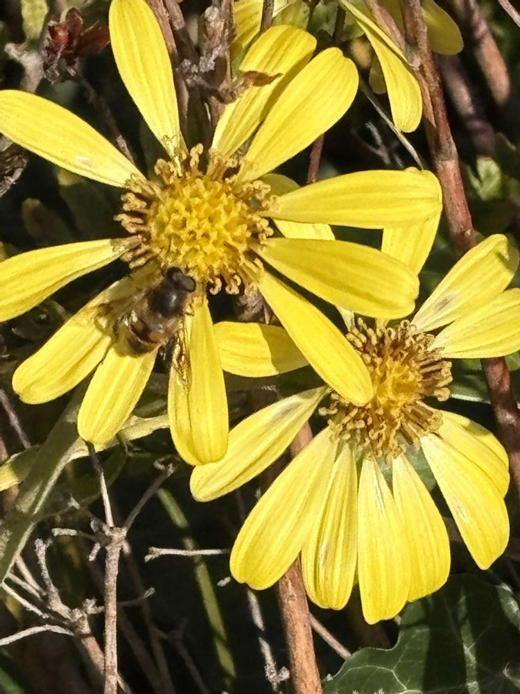 ④黄色のツワブキの花🌼に、蜜蜂🐝