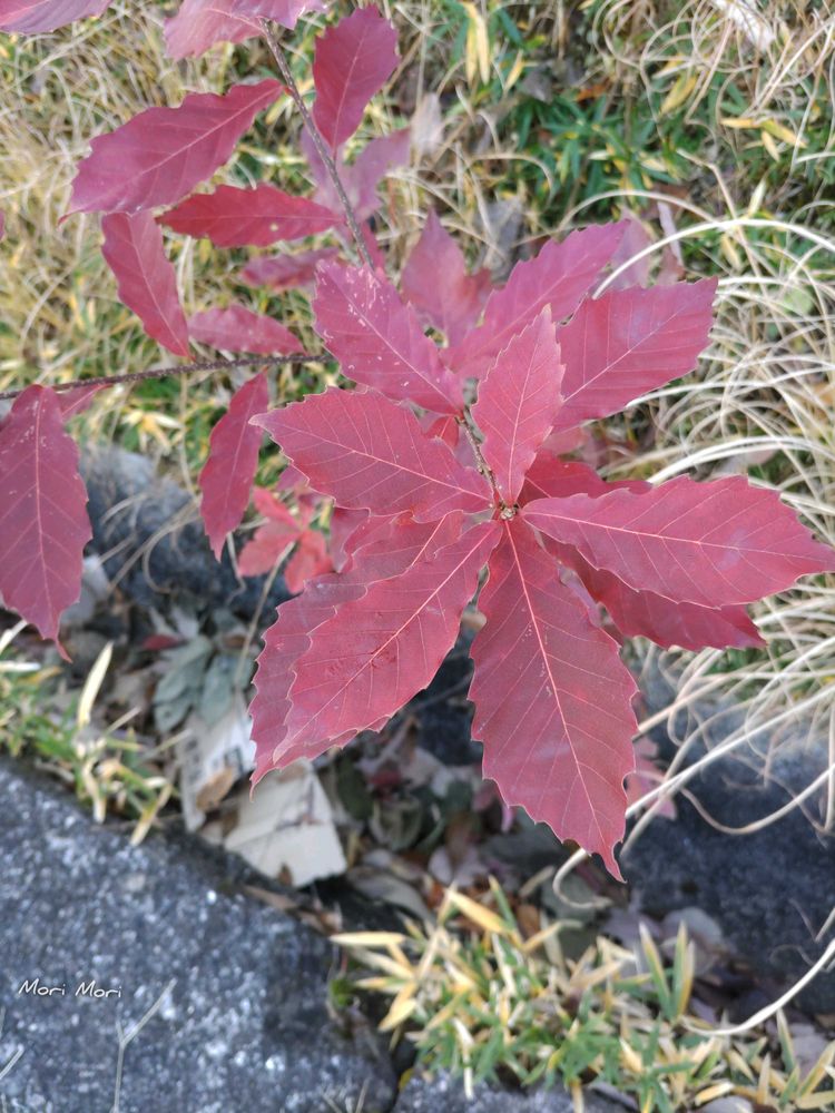 小さなコナラの葉が真っ赤に紅葉していました🍁