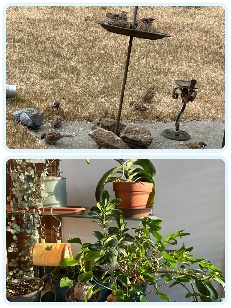 ④今朝こちらは一3℃まで下がり、庭の餌台に雀達が一斉に集まって来ました✨