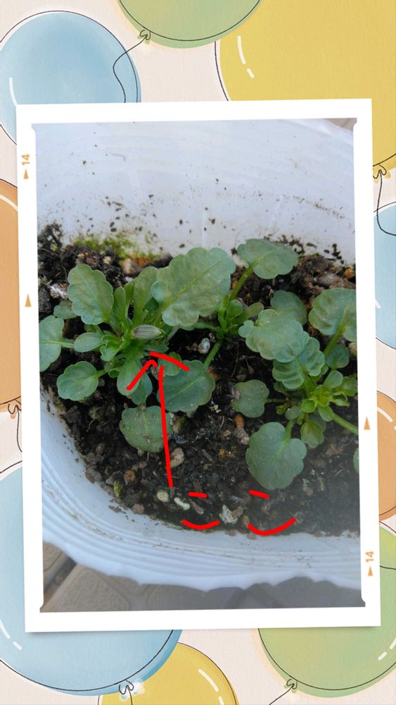 4⃣一昨年冬から昨年春に咲いていたパンジーの採れた種子から発芽して花芽発見👀