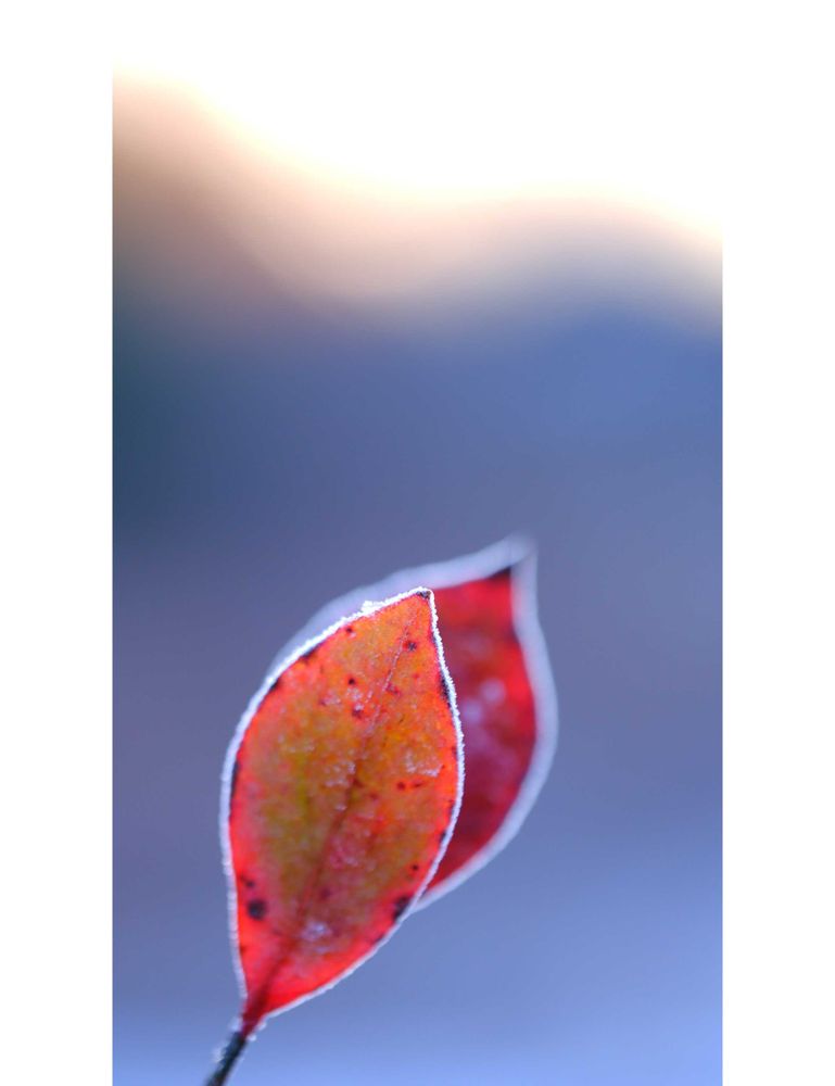 ラビットアイ系のブルーベリーが紅葉したまま雪に出会いました。