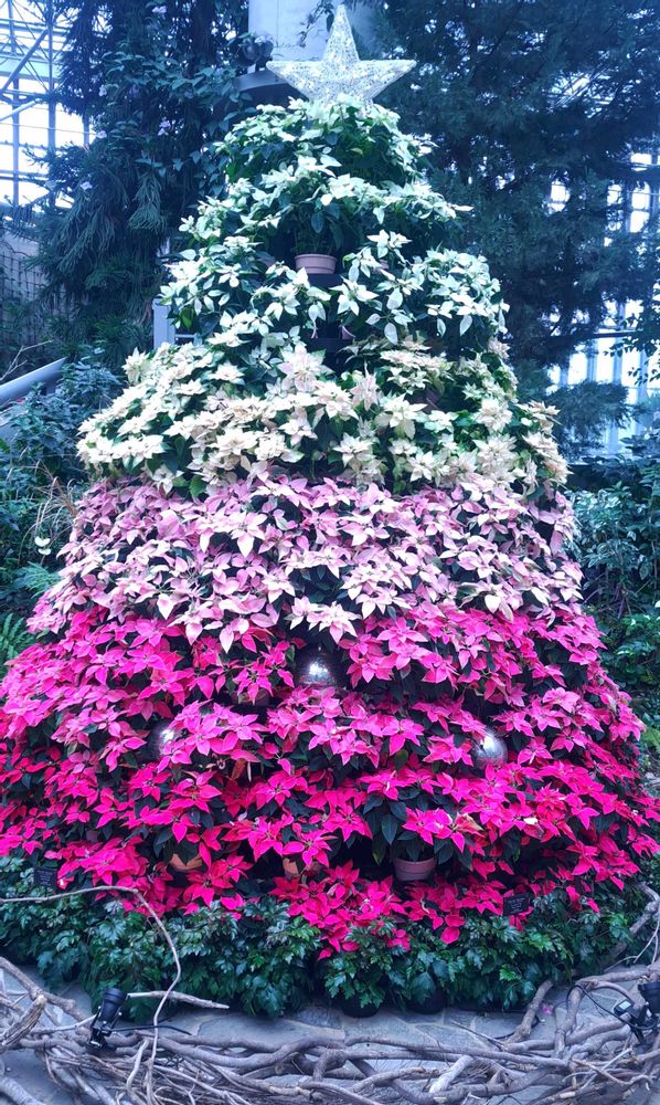 ②枚目…「淡路夢舞台(あわじグリーン館)」の、ポインセチアのグラデーションツリー🎄(高さ3.5m)😍