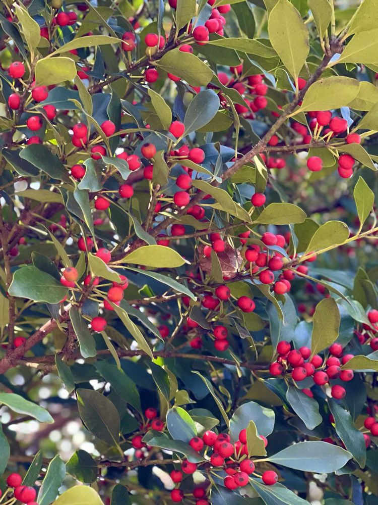 3枚目、モッコクの実もたくさんで、鳥が来ていました。