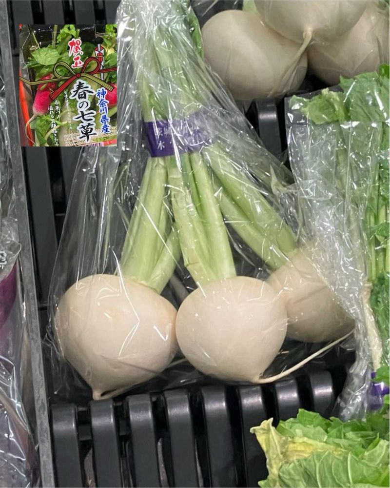 お店に並んでたカブ、七草粥にも入ってますね😉