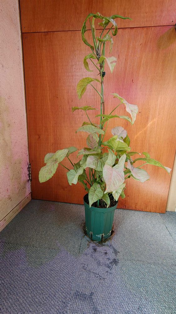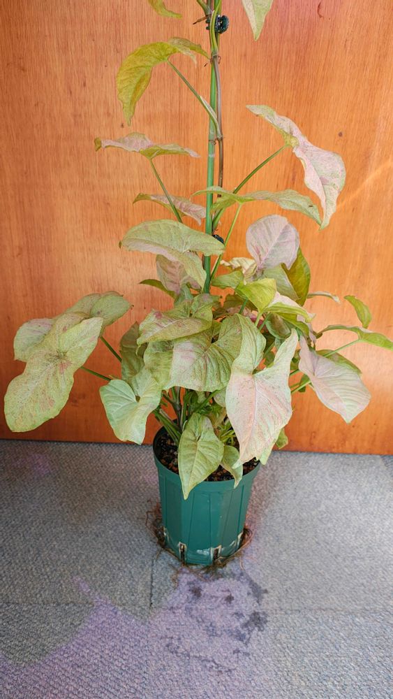 まぁ、シンゴニウム自体はそこそこのサイズでも安い部類には入るので、つるを止めたあと、下葉から代謝で枯れていっても痛くも痒くもないんですけどね。あと、多分サトイモ科なので、つるを切り刻んで茎伏せみたいな挿し木にすれば次の世代は確保できるとは思うんですけど、それをやったらつる性を消せないんじゃないかなとも思うんです。まぁ、すべては5月の連休後です。そのタイミングで挿してどうなるかで合わせていきます。