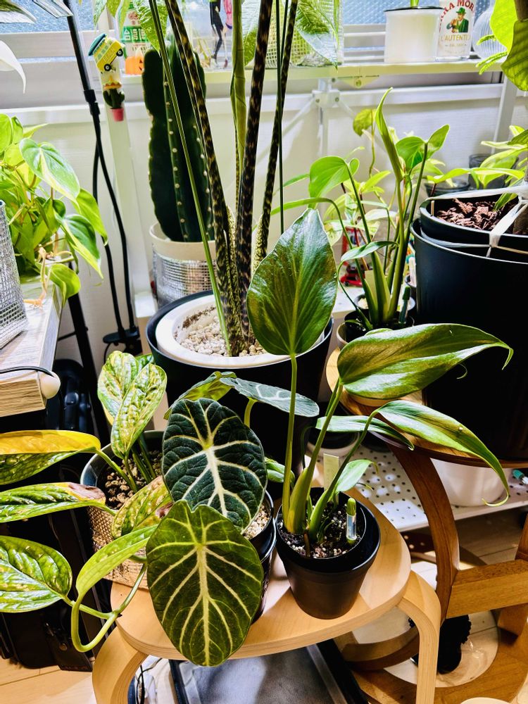 2025.8月に某サイトで購入した【アロカシア チャイ】の 突然変異?なんだろう環境の変化なのか。 購入時、元々有った葉を(1枚目の葉)として、 下から新たな葉が出てきてる状態で到着しました(2枚目の葉) こちらに来て初めて出てきた葉に異変が。。 育て始めて出てきた初めての3枚目、4枚目 (途中から、斑1、斑2、、と続きます) どこまでこの謎の斑入葉が続くのか、 いや止まるのか……記録していきます