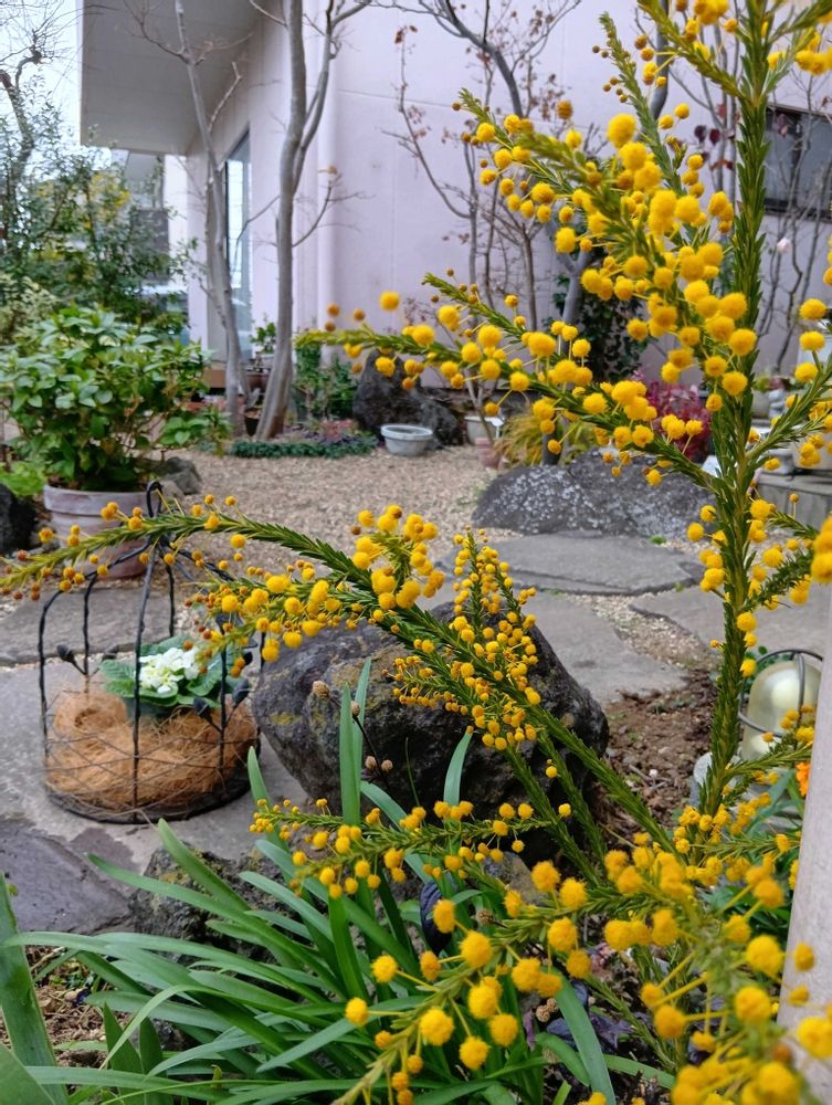 年末、ご近所さんの👵玄関前の小さな花壇を作ってあげたのだけど、水仙の花が終わって色味が少なくなったので、そこにも小さな枝をそっと挿してきた🤫😁😆