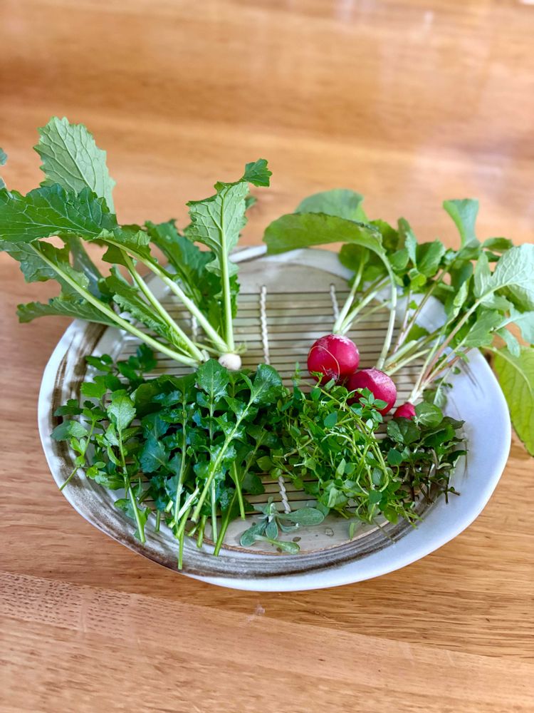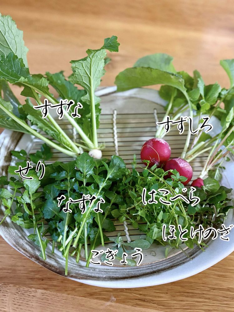 野菜作りは苦手なのでヒョロヒョロのカブの七草です🤣