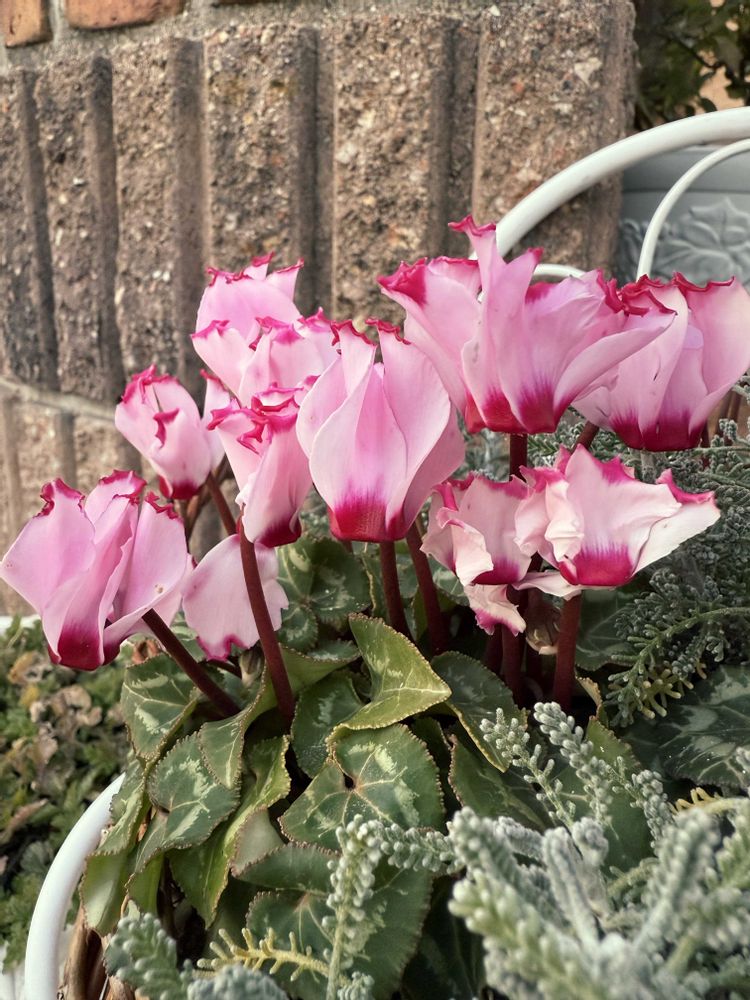 寄せ植えした3種のガーデンシクラメンのうちのひとつ