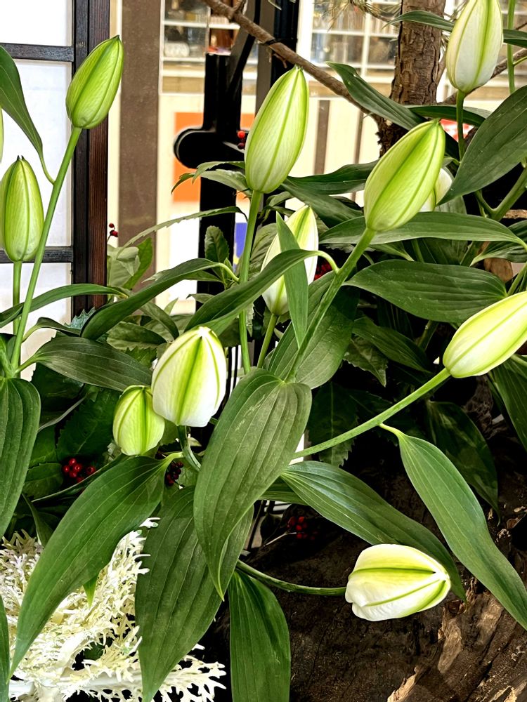 白と緑のふっくらユリの蕾が可愛くって🤍💚