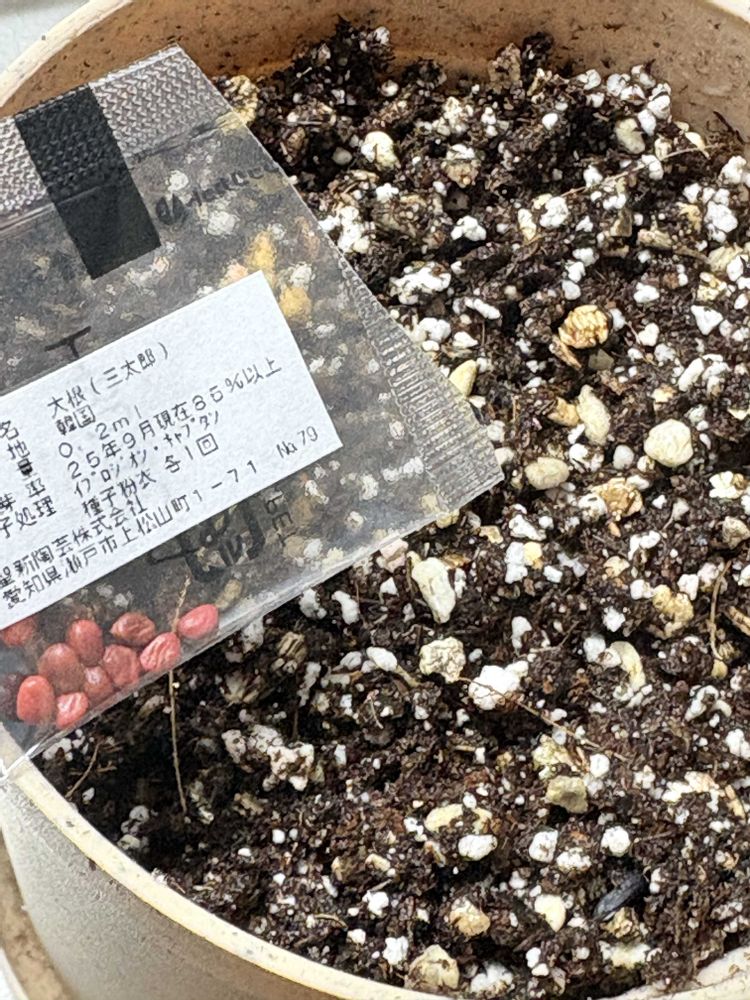 『大根』 種まきから4日で芽が出ました🌱 あまりに早くて流石に驚いた!