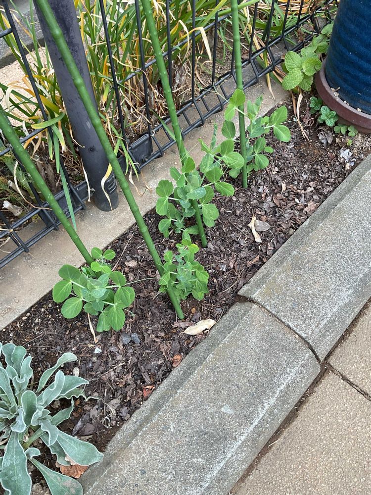 寒い😨ので、植えた絹さやも 成長止まっちゃった ..... 次の成長は、冬を 耐え抜いてからかな。。。
