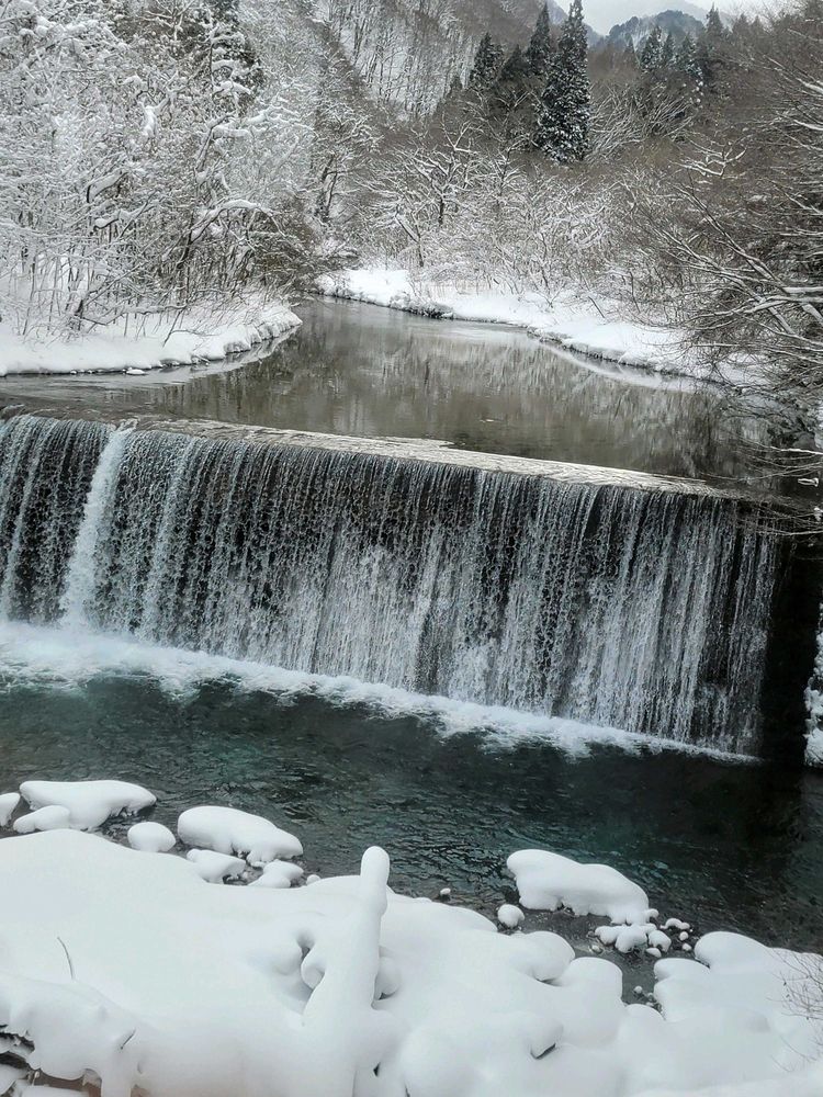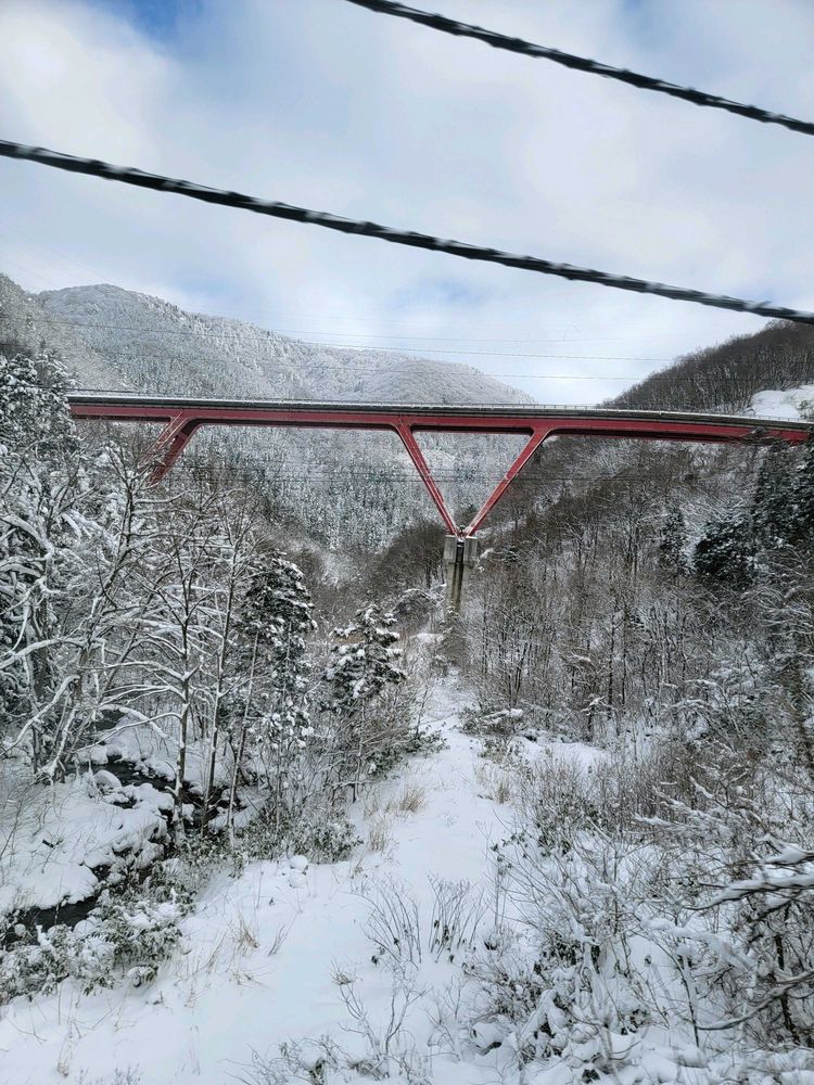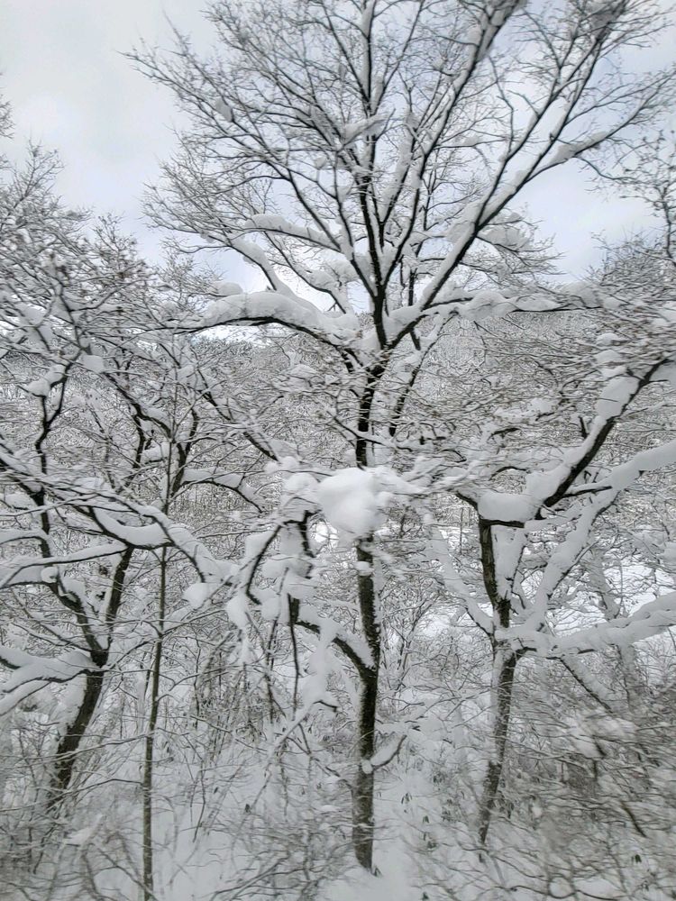 2️⃣角館駅過ぎ田沢湖駅の間木に積もった雪が重そう😣