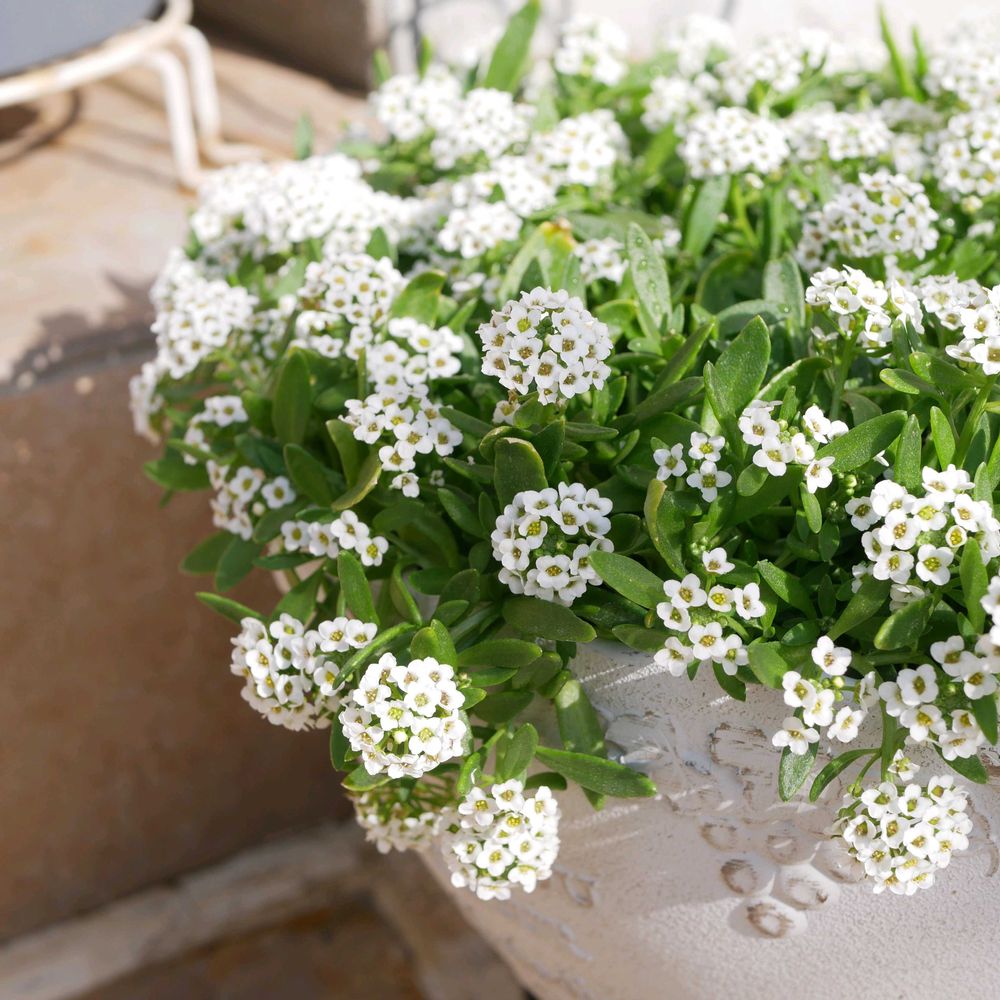 いつもは脇役だけど、白い鉢にアリッサムだけを植えて…