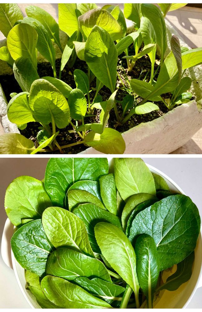 2階のベランダでビニールを被せて育てている小松菜がだいぶ大きくなったので収穫しました〜