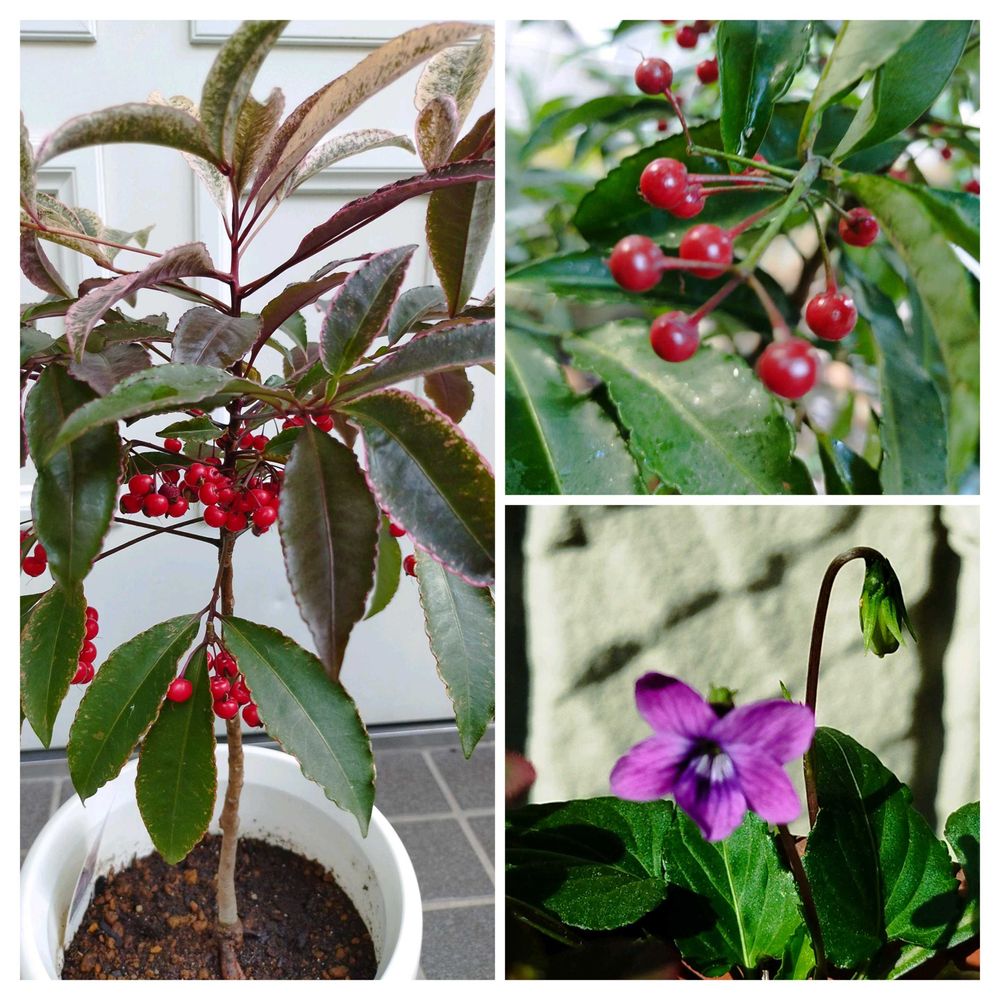 マンリョウと可愛いスミレが咲いています💜