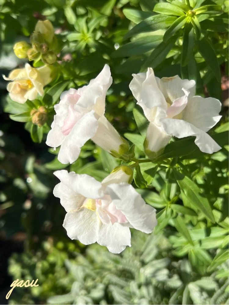 ①②金魚草トゥイニーが少しずつ咲いてきました♪ 白に淡いイエローとピンクが入るシンプルな子😉