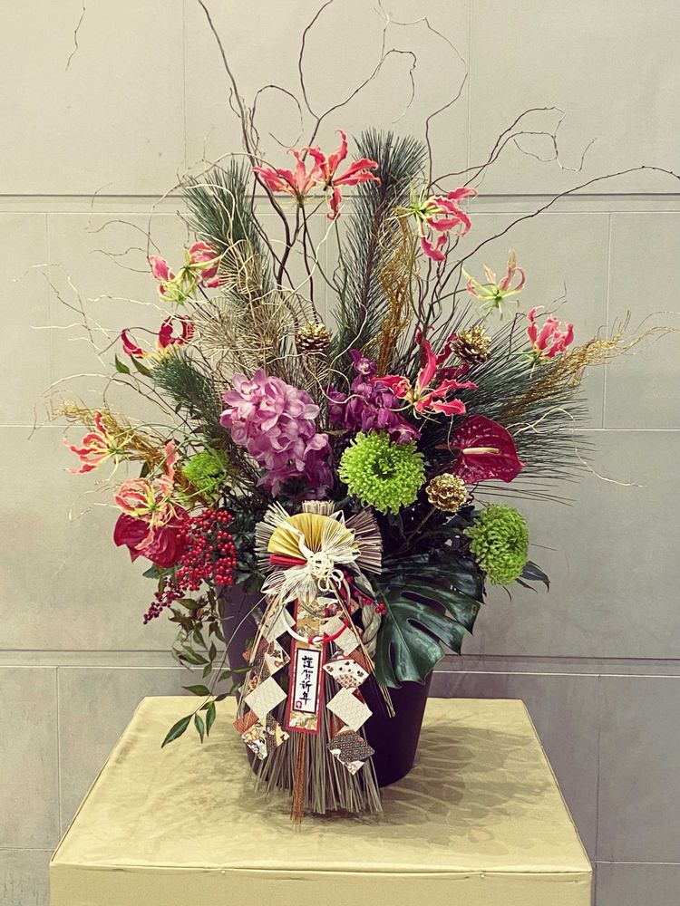 ①⑤ビルのショーウィンドウのお正月盛花、