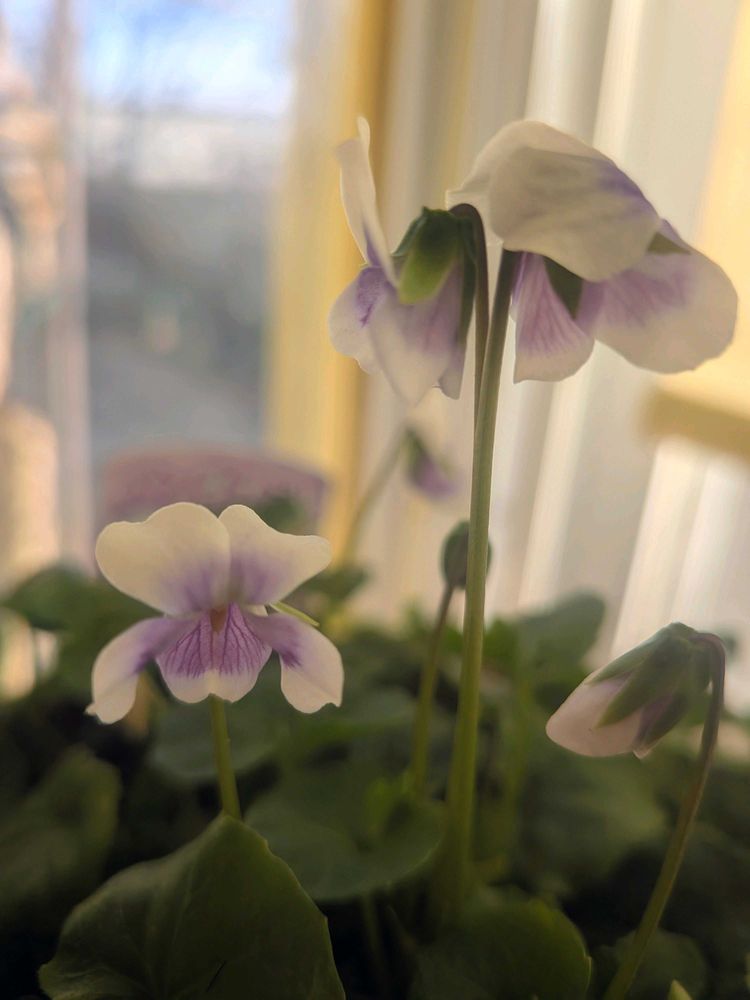 パンダスミレも可愛い🥰 我が家の午後に陽が入らない玄関外と違い窓辺で幸せな子😅