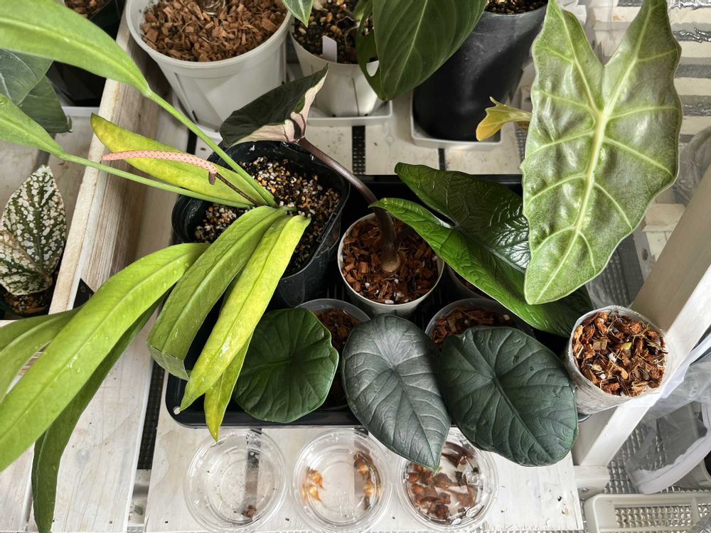 2025.8月に某サイトで購入した【アロカシア チャイ】の 突然変異?なんだろう環境の変化なのか。 購入時、元々有った葉を(1枚目の葉)として、 下から新たな葉が出てきてる状態で到着しました(2枚目の葉) こちらに来て初めて出てきた葉に異変が。。 育て始めて出てきた初めての3枚目、4枚目 (途中から、斑1、斑2、、と続きます) どこまでこの謎の斑入葉が続くのか、 いや止まるのか……記録していきます
