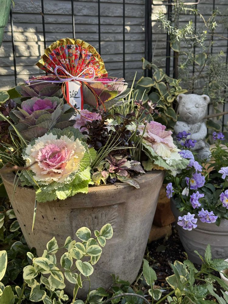 鉢も葉牡丹もやコプロスマもアジュガも彩まで綺麗で驚きました🫢