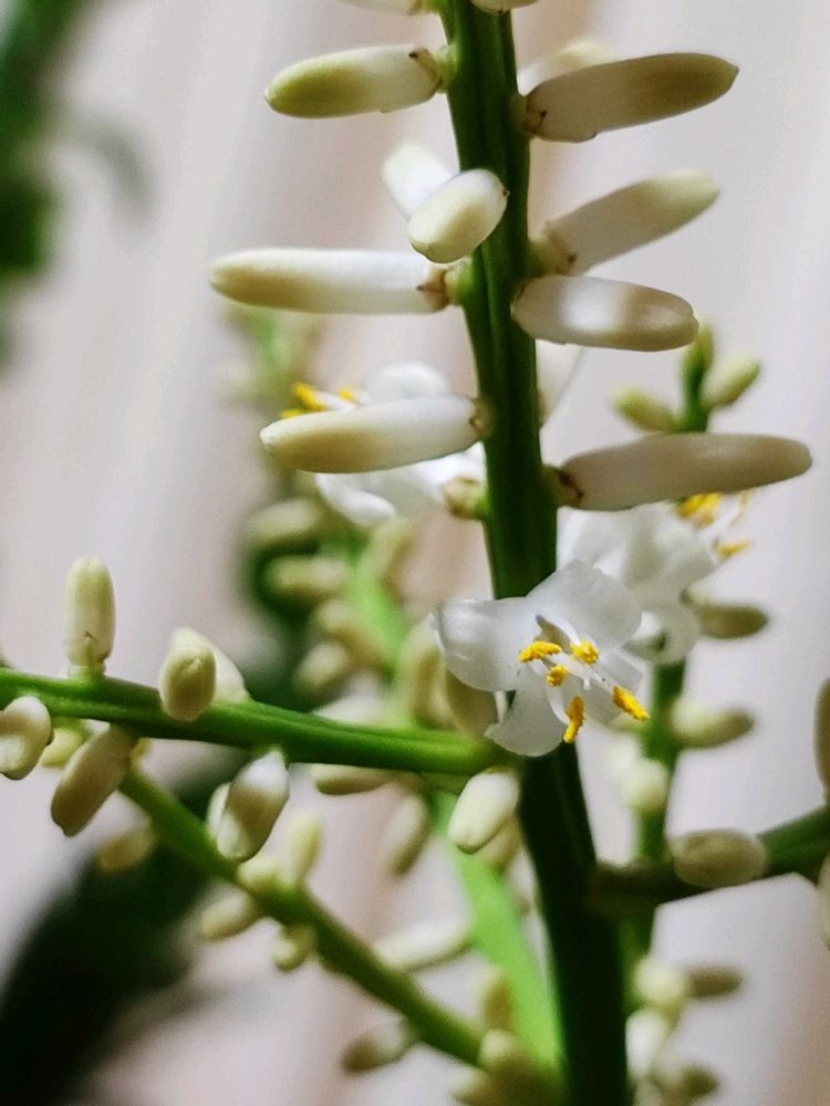昨日のチランジア フンキアナ(エアプランツ)開花に引き続き、コルジリネも花が咲きました。花束に入っていたリーフから挿し木で根付いて、花まで咲いちゃうなんて偉いなぁ。蕾も大量なのである程度長く鑑賞できそうです~。ありがとう。