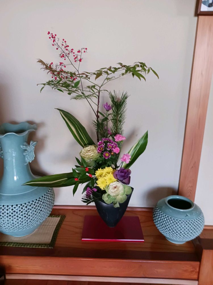 ①火曜日(6日)の自宅近くのマサキの木です。なんの木かと調べたらマサキと出ました。②は同じ日の車庫前の霜です。日陰なので正午なのにまだ残ってました。③今日は知り合いの食堂へお昼時に用事がてら行き、ランチを頼みました。そして食後のコーヒーをいただきました。美味しかったです。④は仕事帰りに親しい知り合いから電話がありお家に寄りました。玄関にはまたお正月らしい生花を飾っていました。(以前も玄関の生花を撮らせて貰ってます😍)
