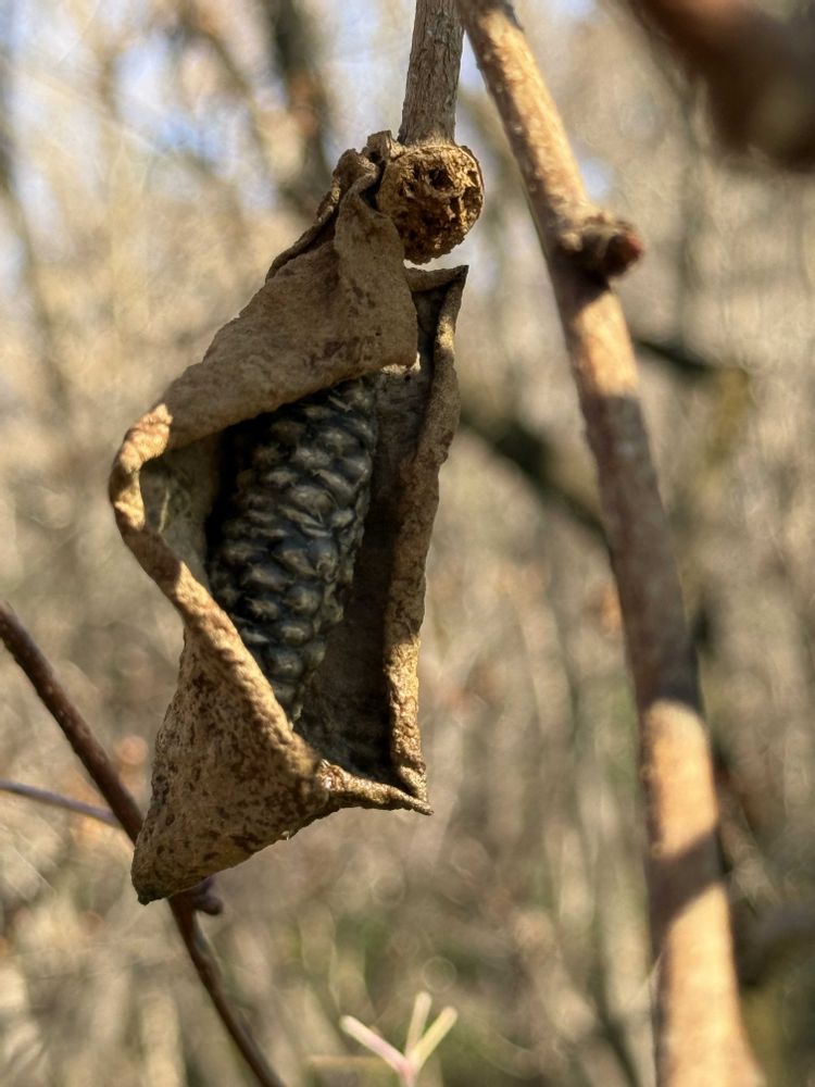 野川観察園の立ち枯れたアケビの実がとても印象的でした