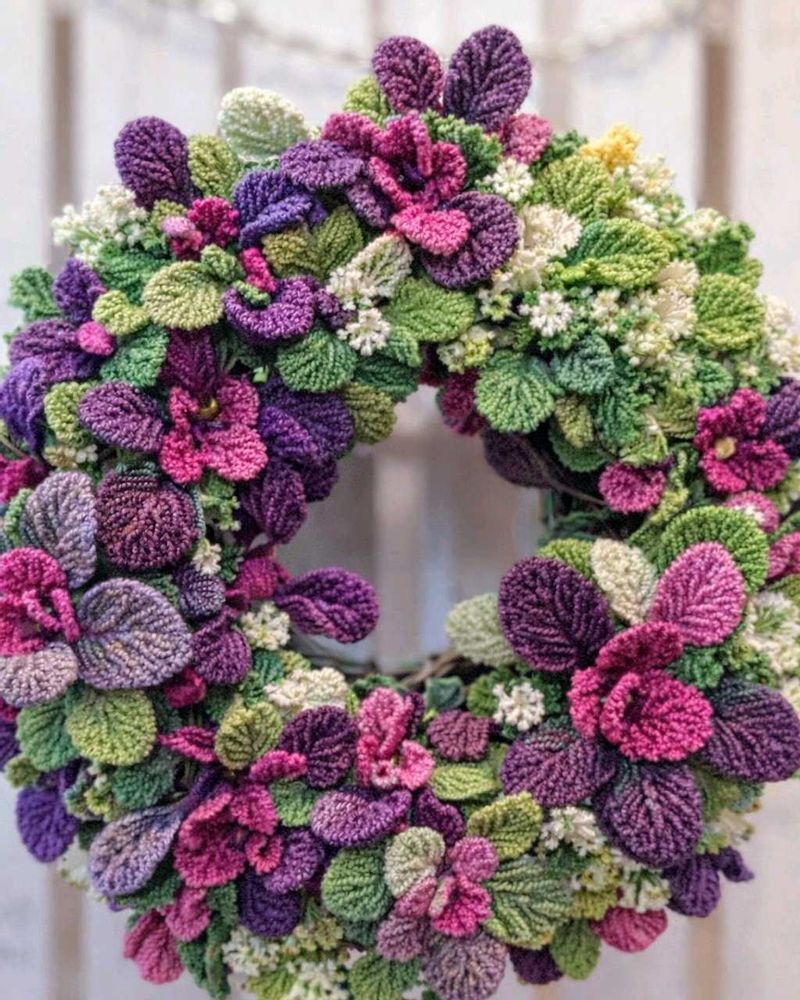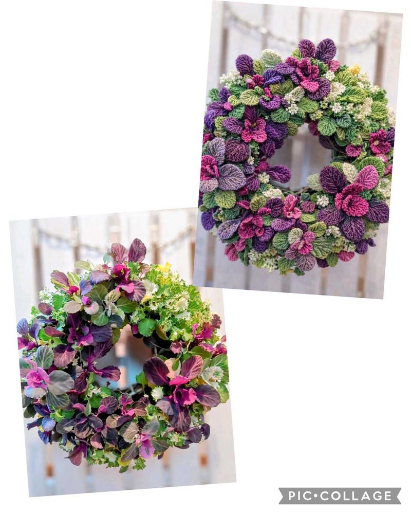 1枚め↙️葉牡丹リース。↗️チャッピー作、編み物風。