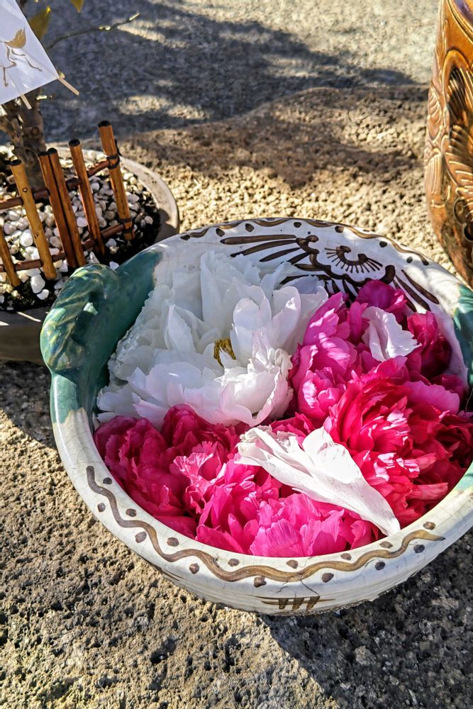 今の時期、ぼたんの花はこの大きさの手水鉢ま贅沢に感じられて😊