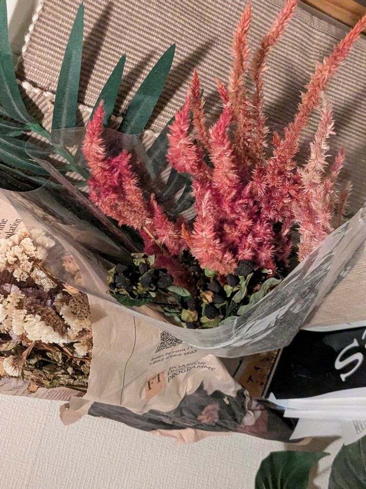 のり花さんの槍鶏頭(ヤリケイトウ),ドライフラワー,ヒペリカムの実の投稿画像