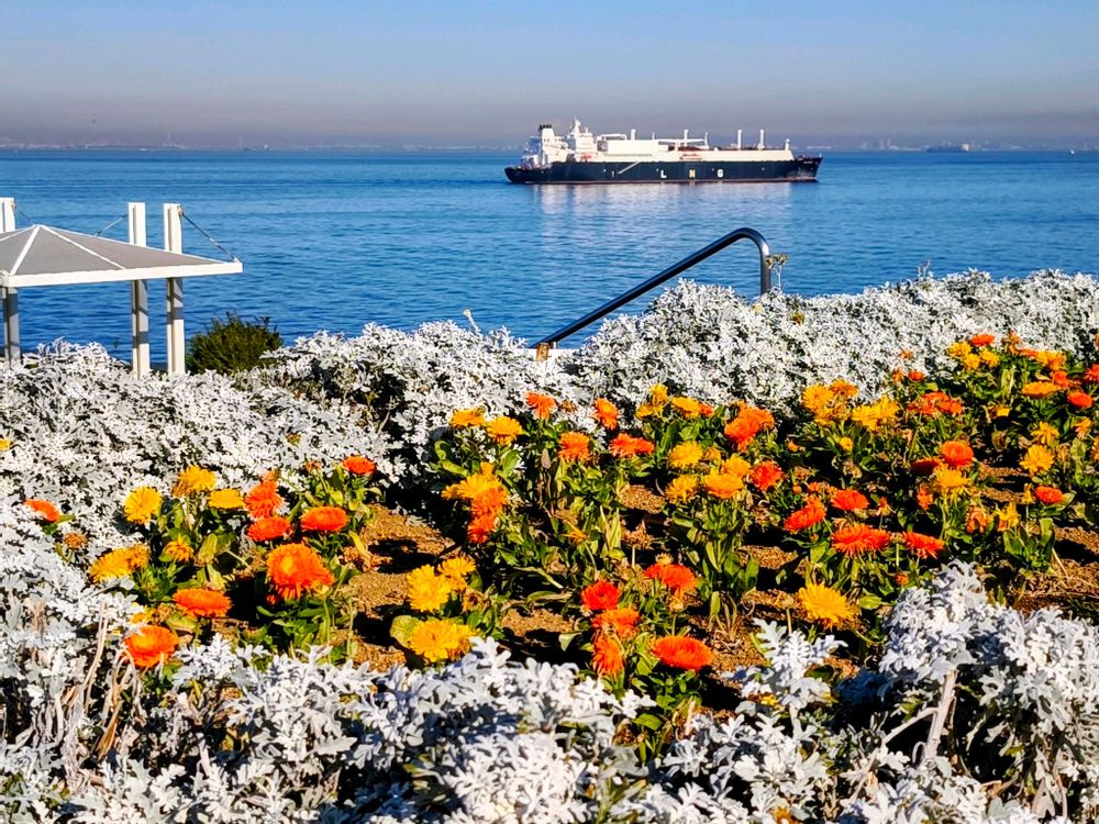 ホント、お花と海と船🚢🌼🌊