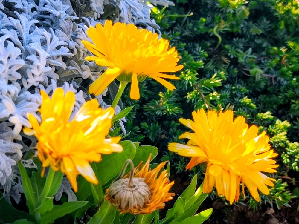 キンセンカの周りはシロタエギク?色合いがステキですよね〜✨