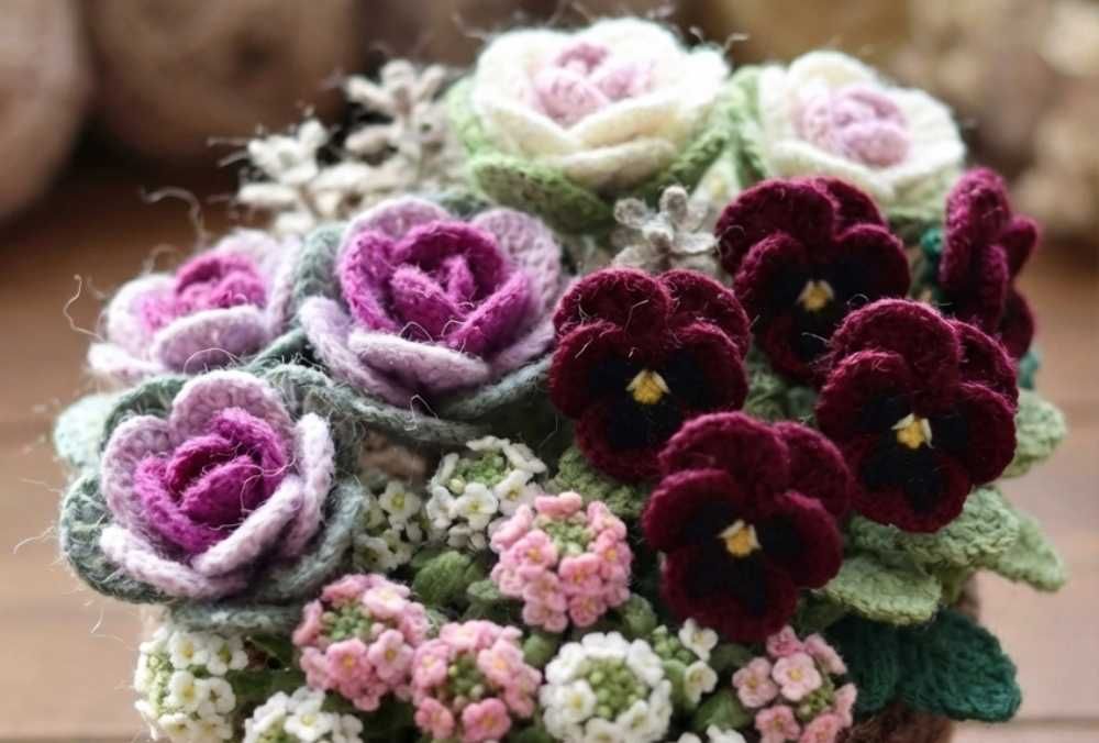 毛糸のお花、可愛い💕