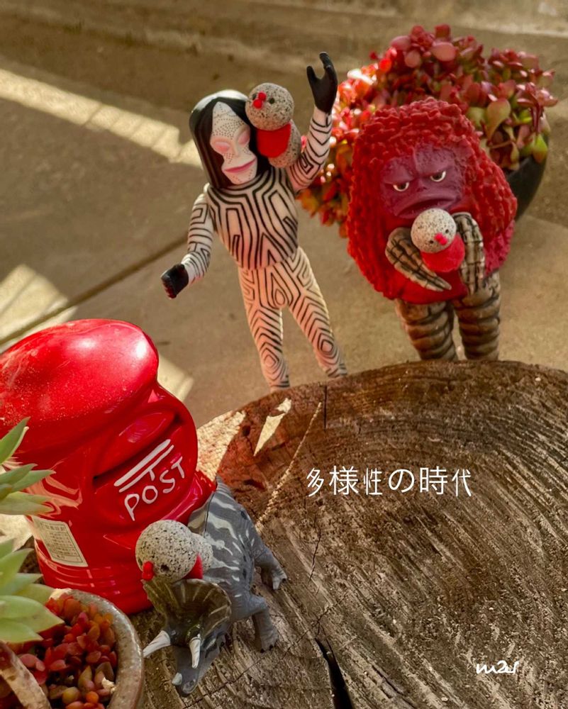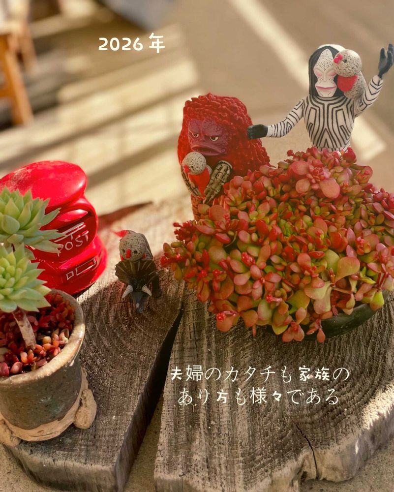 可愛いー😍多肉ちゃん達と、哲学😆を感じるフィギュアさんにツボりました。