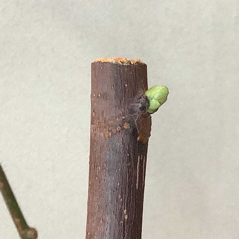 この時に剪定した長い枝をそのまま深めの容器に入れた用土に挿しておりますが、まもなく萌芽するようです(写真2)