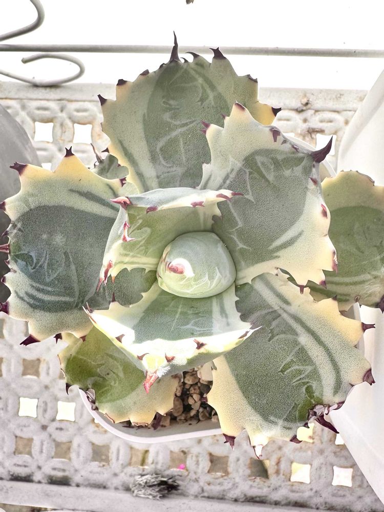 ダイソー産 アガベ 王妃甲蟹錦。アガベは強くて安心😌💭
