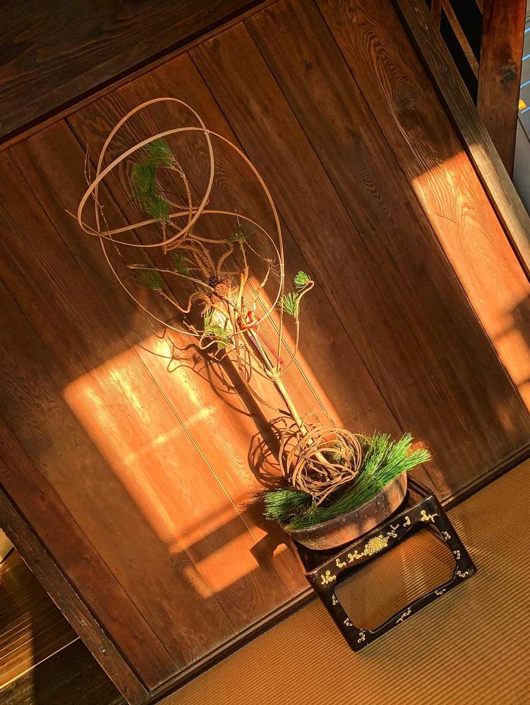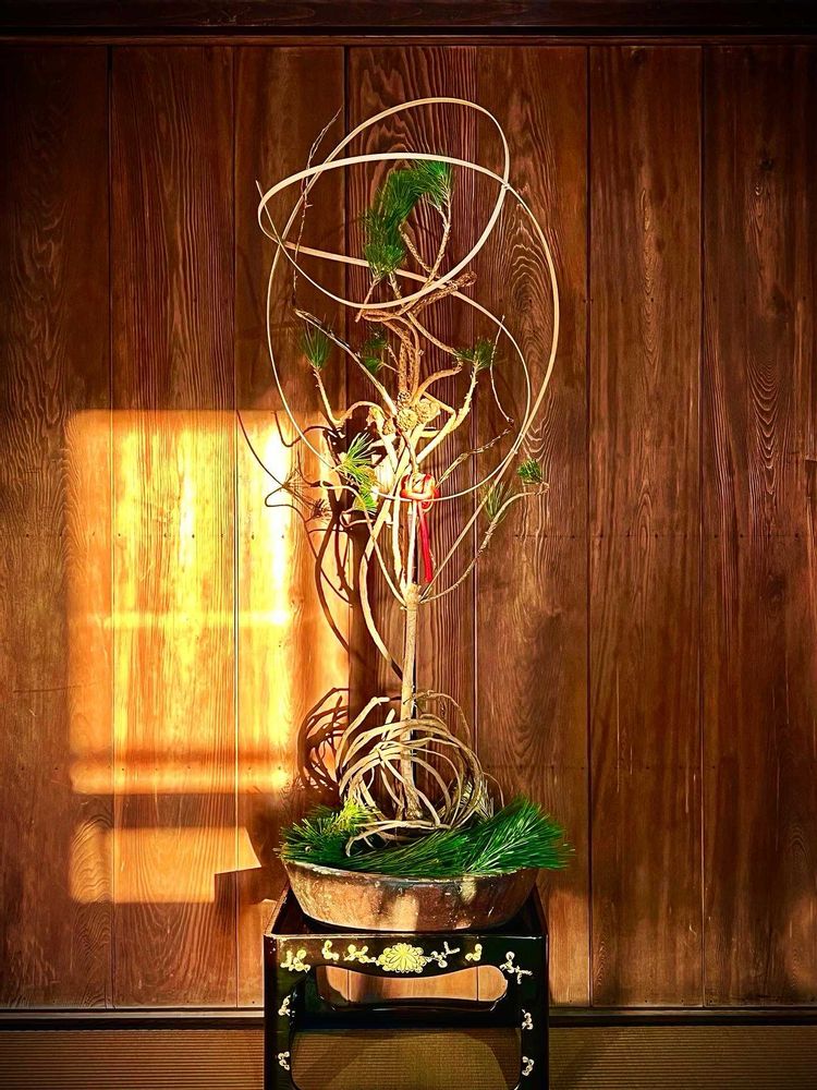 年末年始生け込み 天満屋様 タルト専門店うちやま果樹園様 クライアント様より素朴で生命の力強さを感じられるモノをとのご要望で、不知火松合土蔵白壁群 明治蔵屋敷を活かした店舗と素材を活かした食材を加味し 全体を生命の元である螺旋を意識し、根の回転より天に向かって力強く中心から外へ伸び勢いある姿をご発展とご繁栄を願う気持ちで表現 天満屋さんのフルーツやタルトを上部の竹籤で丸みを使って柔らかく表現してみました。 ご依頼ありがとうございましたm(__)m