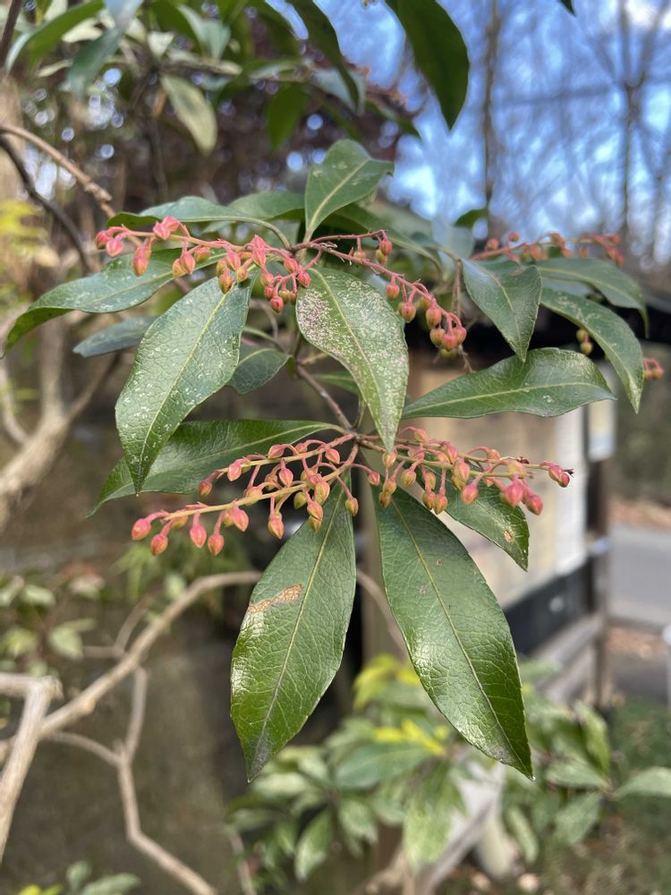 帰り、お寺を出たところにアセビの木があるのに気がつきました。