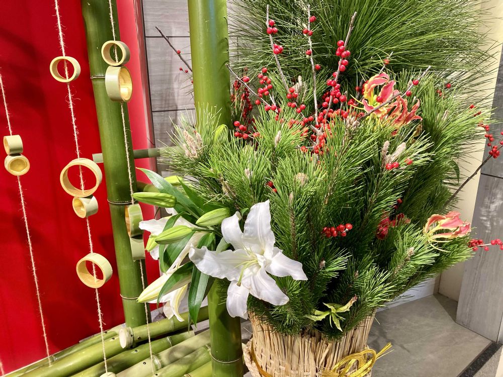 東京ガーデンテラス紀尾井町2階、地下鉄への連絡通路に飾られた正月飾り。