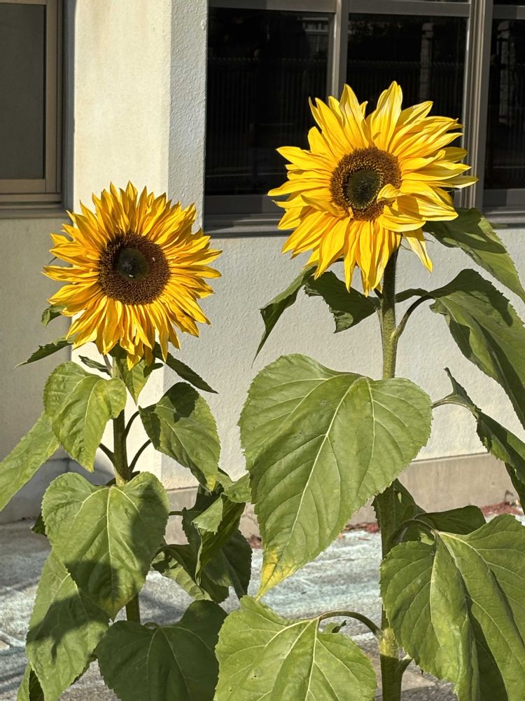 この寒い中、なんと、小学校の庭に『ひまわり』が咲いていました🌻