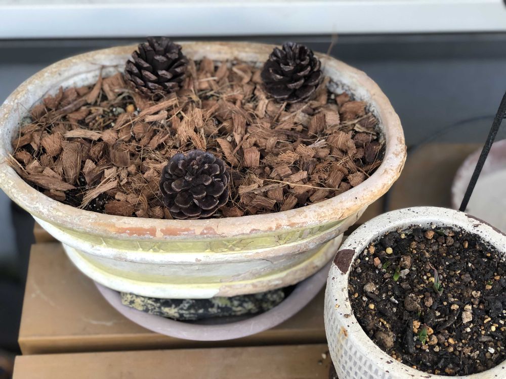 まだ寂しいので松ぼっくりを飾ってみた‥