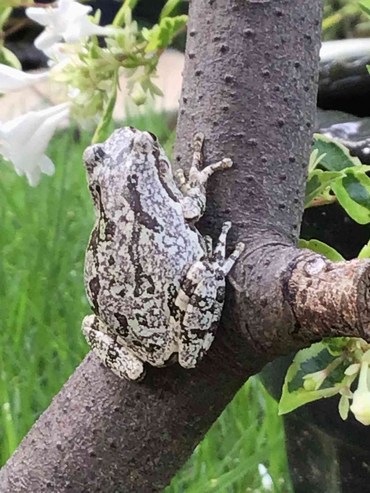このゲッケイ樹の木に 居ましたから、木の 木肌に 少し、合わせているのでしょうか、とにかく 貫禄は 出て来ました。 1 年目の アマガエルさんは、可愛い盛り💕、でも ベテラン アマガエルさんも 、これは これで、 また