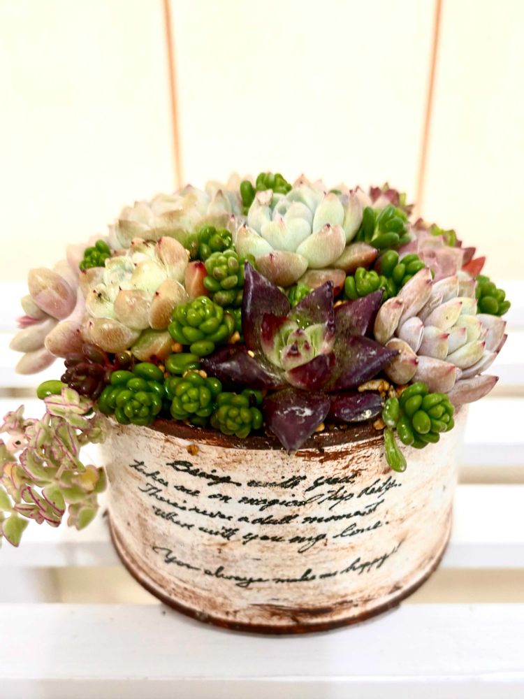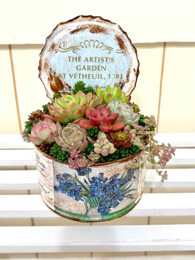 室内で寄せ植え体験出来るようにしたよ〜って連絡あり、急いでリメイク缶作り、次の日、いそいそと出かけ。楽しんできましたよ〜.•♬