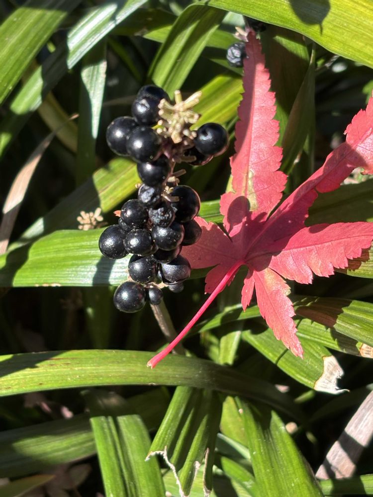ヤブラン,ヤブランの実,もみじの落ち葉の投稿画像