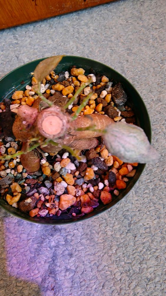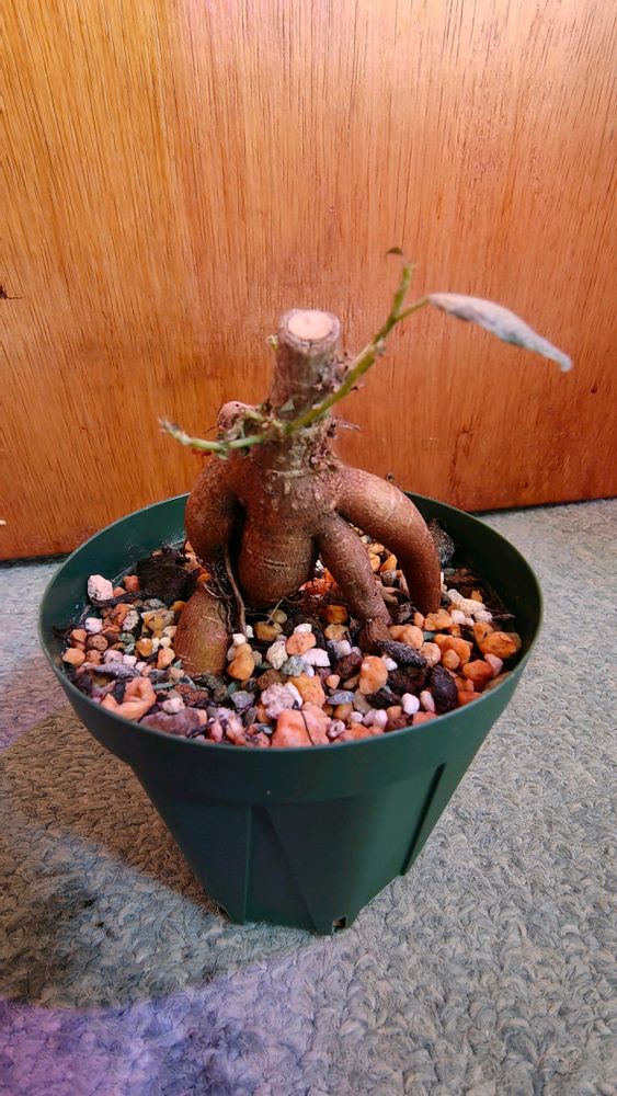 一応落葉後の細い茎は緑なので、他と同じく継続管理します。選ぶ際に塊根部の形だけで選んだ子だからね。春に動いてくれればいいけどね。