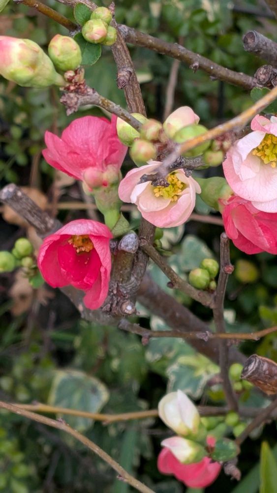 1️⃣2️⃣源平咲きのボケ(木瓜)の花が咲いてました。