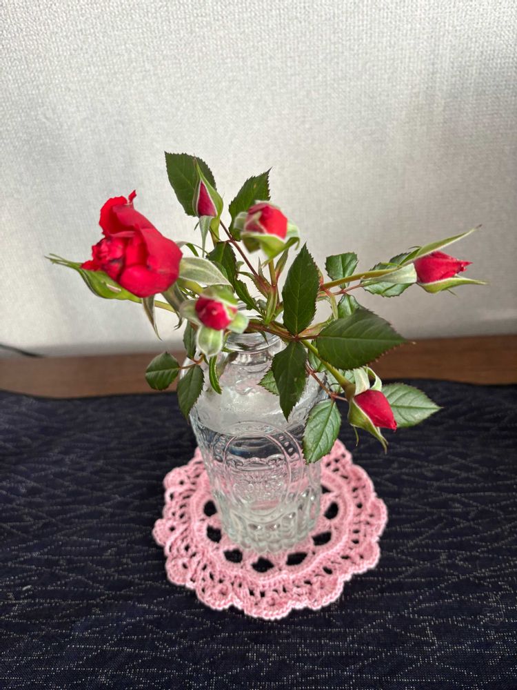 はい、ミニ薔薇、蕾で飾るとそれはそれで結構可愛いですね🌹